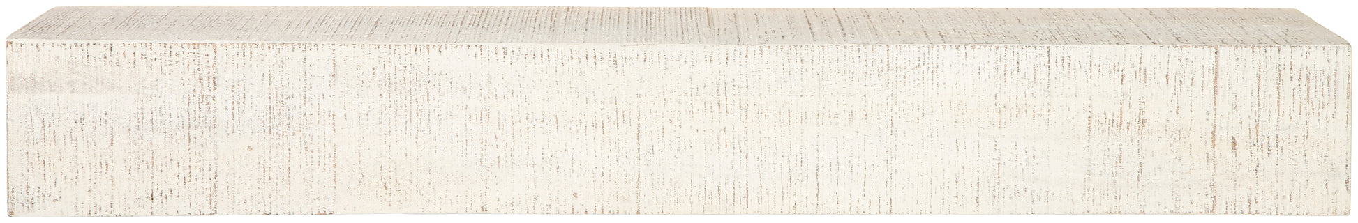 Bring a personal touch to your space with the help of this wall shelf. The simple construction and antiqued white finish act as the perfect base for photos, decorative items and memorabilia.
