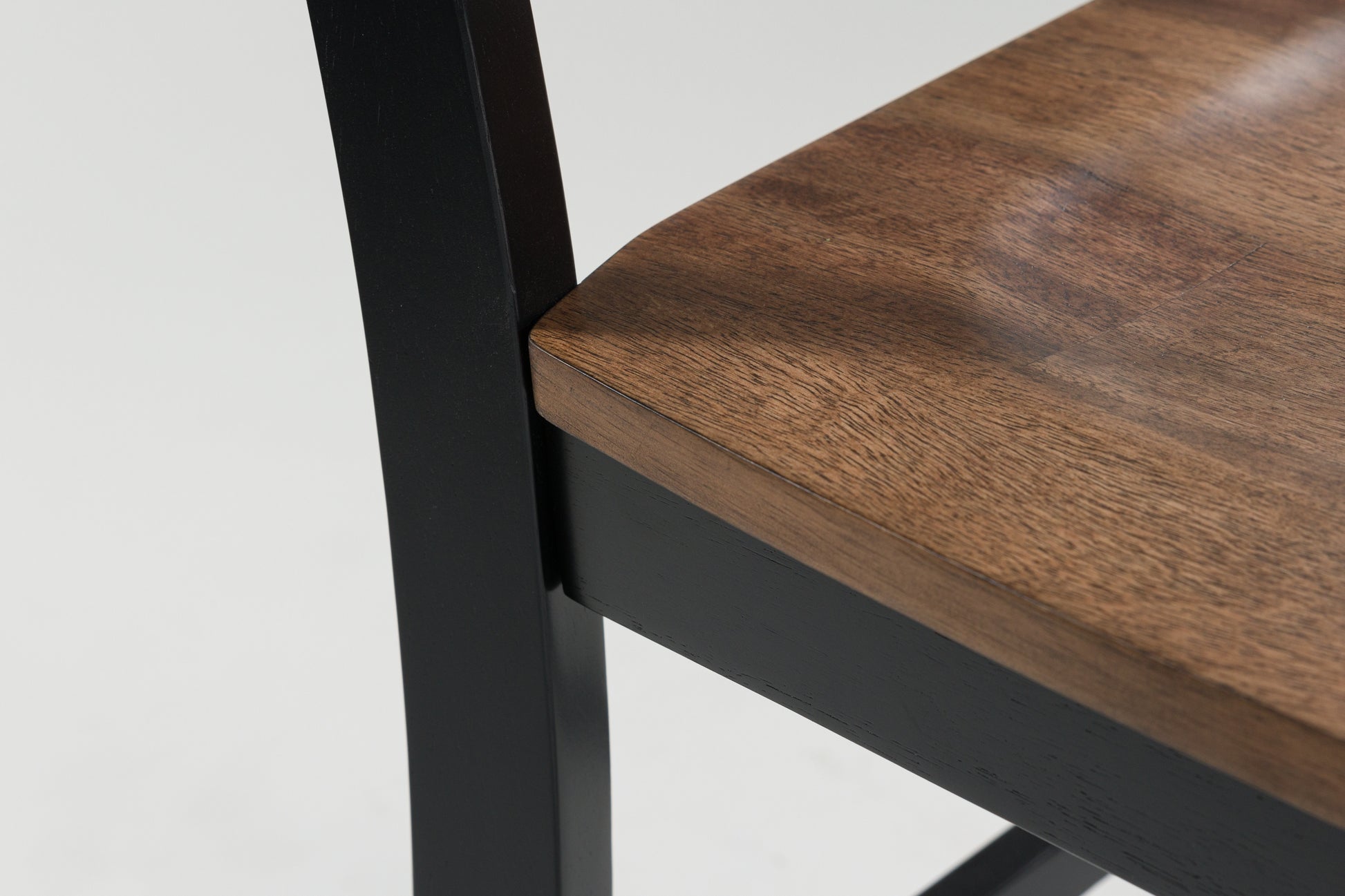 Details | D634-124: Made with solid wood frame, Seat with butcher block veneer pattern in deep brown wood tone finish, Frame with warm satin black finish, Contoured seat, Adjustable levelers, Assembly required, D634-13: Made with hardwood solids, mango wood veneer and MDF substrate, Tabletop with butcher block veneer pattern in deep brown wood tone finish, Frame with warm satin black finish, Storage pedestal with a double door on each side, Seats up to 6, Assembly required, | |