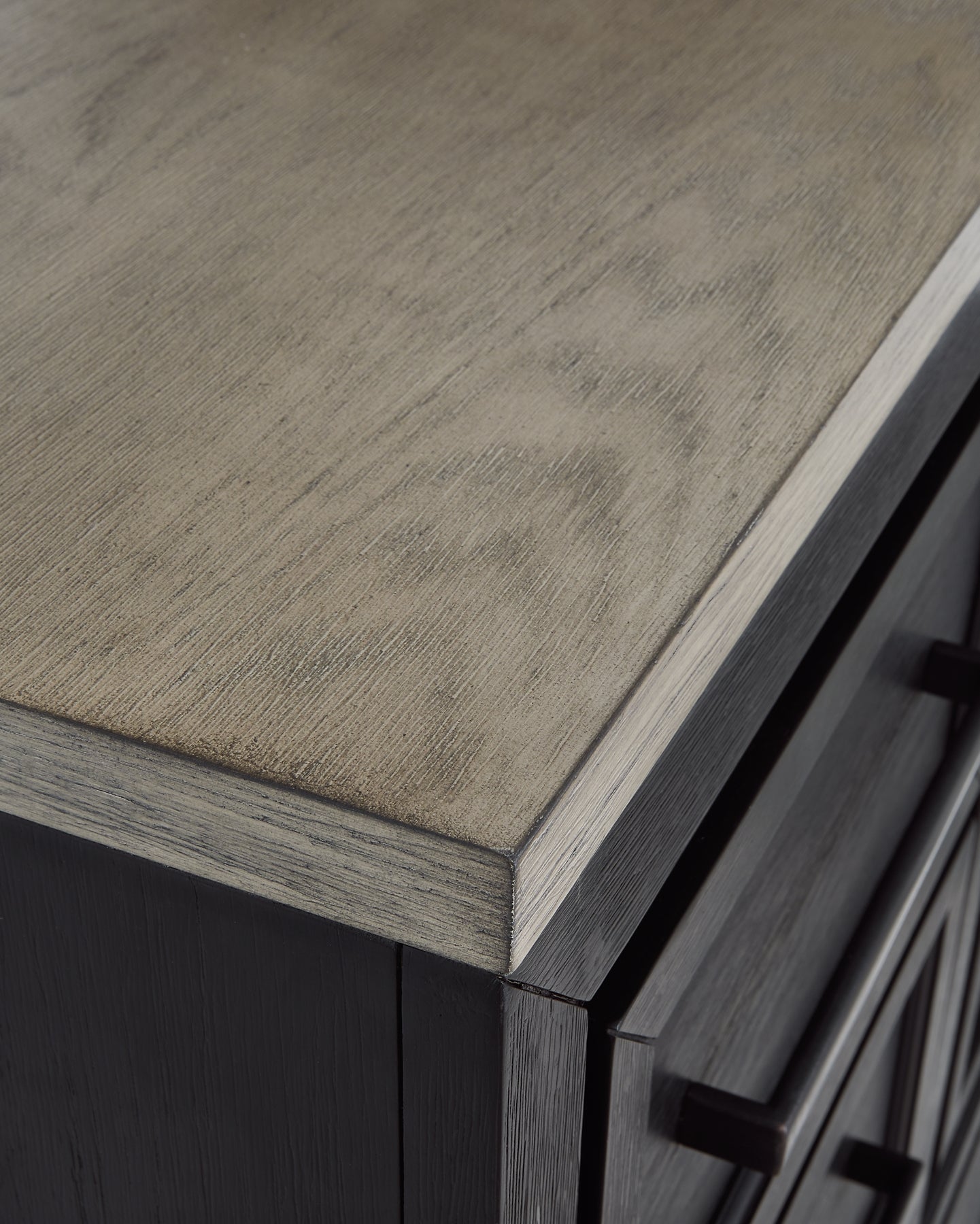 | Details | B989B4: Includes king panel headboard, storage footboard and rails with roll slats, Made with hardwood solids, select oak veneers and engineered wood, Two-tone finish (brushed black and dusty grayish brown wood tone), Headboard with picture frame moulding, Footboard with two deep drawers, Smooth-gliding soft-close drawers with fully finished interiors and dovetail construction, Sleek drawer pulls with black finish, Bed does not require additional foundation/box spring; accommodates most zero clearance adjustable bases with the addition of a bunkie board, Mattress available, sold separately, Assembly required, B989B1: Includes dresser and mirror, Made with hardwood solids, select oak veneers and engineered wood, Two-tone finish (brushed black and dusty grayish brown wood tone), Sleek drawer pulls with black finish, 11 soft-close, smooth-gliding drawers with fully finished interiors and dovetail construction (top drawers felt lined), 5 drawers with brushed black finish; 6 drawers with grayish brown wood tone, 3 drawers located behind each door, Mirror mounts to back of dresser, Assembly required, B989-48: Made with hardwood solids, select oak veneers and engineered wood, Two-tone finish (brushed black and dusty grayish brown wood tone), Sleek drawer pulls with black finish, 5 soft-close, smooth-gliding drawers with fully finished interiors and dovetail construction (top drawers felt lined), 3 pull-out trays (felt lined) and 2 adjustable shelves behind door, | |