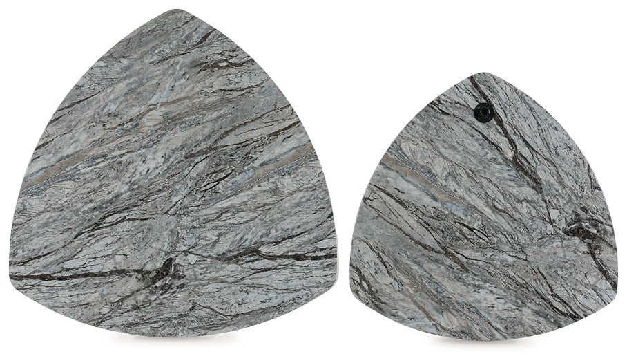 Details | Made with decorative laminates and MDF substrate, Tabletops with gray faux marble, Legs with replicated weathered gray wood grain, Integrated pivoting lower table, Assembly required | |