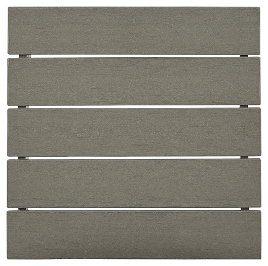 It’s the dawn of a new day for gray. Embrace the style trend with this outdoor end table. Crafted of HDPE material that combines the exceptional durability and weather resistance you need with the “wood look” you love, the rectangular table takes alfresco living to a whole new level. Its slatted top infuses a plank-style, farmhouse-inspired touch that naturally sheds rainwater.