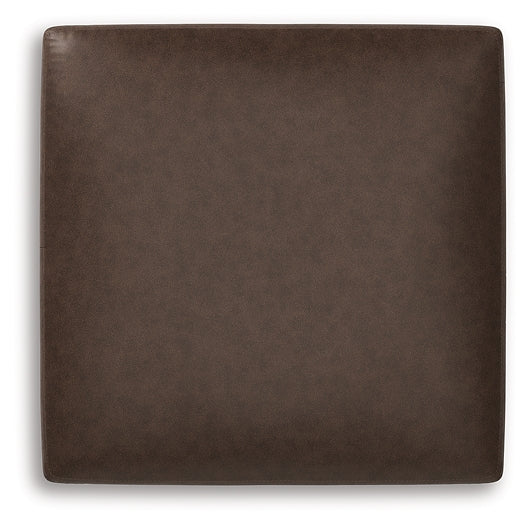 Modern comfort never looked so good. Accented with jumbo stitching for high-fashion flair, this oversized ottoman is the ultimate choice in comfortably cool, contemporary style. Its caramel-hued faux leather indulges with an upscale feel and wows like the real thing.